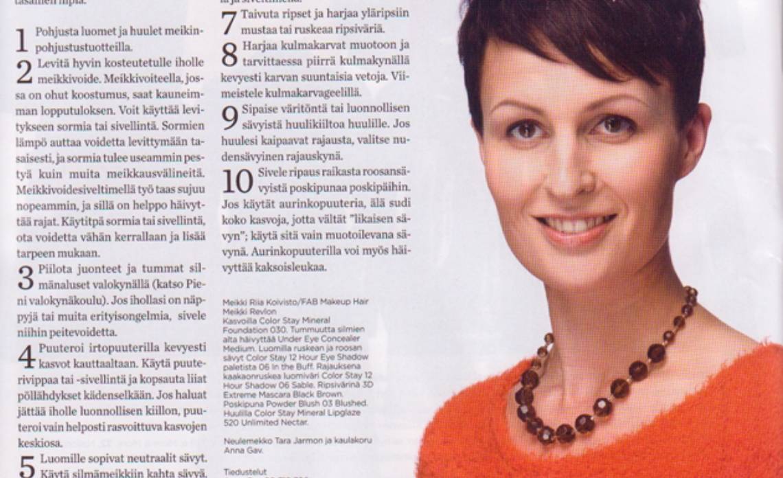 Many fashion magazines and newspapers publish an articles of Finnish artist and jewelry designer Anna Gav.  Her jewelry collections and artworks coverage in Elle, Cosmopolitan, M Magasine, Gloria, Me Naiset, Eeva, Saara, Olivia,  Kotiliesi, Kauneus ja terveus, Muotimaailma, Iilona, Demi, Helsingin Sanomat, Iltalehti, Moda, Kodin kuvalehti, Anna, Häät, Voi Hyvin, Sport, TG, Tara, Solo, Amelia, Tove, Allas, etc.