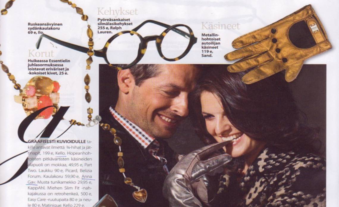 Many fashion magazines and newspapers publish an articles of Finnish artist and jewelry designer Anna Gav.  Her jewelry collections and artworks coverage in Elle, Cosmopolitan, M Magasine, Gloria, Me Naiset, Eeva, Saara, Olivia,  Kotiliesi, Kauneus ja terveus, Muotimaailma, Iilona, Demi, Helsingin Sanomat, Iltalehti, Moda, Kodin kuvalehti, Anna, Häät, Voi Hyvin, Sport, TG, Tara, Solo, Amelia, Tove, Allas, etc.