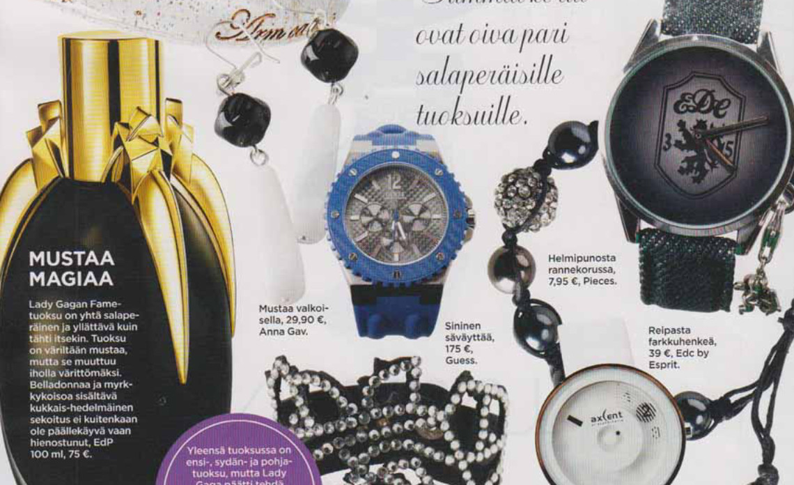 Many fashion magazines and newspapers publish an articles of Finnish artist and jewelry designer Anna Gav.  Her jewelry collections and artworks coverage in Elle, Cosmopolitan, M Magasine, Gloria, Me Naiset, Eeva, Saara, Olivia,  Kotiliesi, Kauneus ja terveus, Muotimaailma, Iilona, Demi, Helsingin Sanomat, Iltalehti, Moda, Kodin kuvalehti, Anna, Häät, Voi Hyvin, Sport, TG, Tara, Solo, Amelia, Tove, Allas, etc.