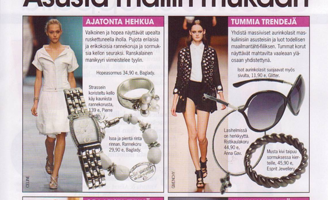 Many fashion magazines and newspapers publish an articles of Finnish artist and jewelry designer Anna Gav.  Her jewelry collections and artworks coverage in Elle, Cosmopolitan, M Magasine, Gloria, Me Naiset, Eeva, Saara, Olivia,  Kotiliesi, Kauneus ja terveus, Muotimaailma, Iilona, Demi, Helsingin Sanomat, Iltalehti, Moda, Kodin kuvalehti, Anna, Häät, Voi Hyvin, Sport, TG, Tara, Solo, Amelia, Tove, Allas, etc.