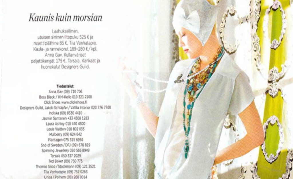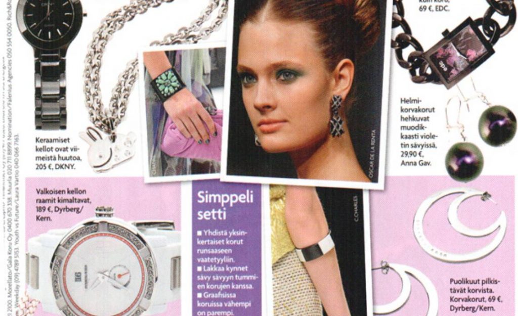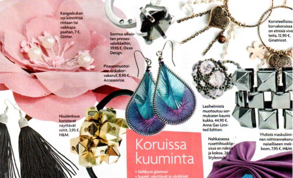Fashion magazine Me Naiset and Anna Gav Jewelry collection.
