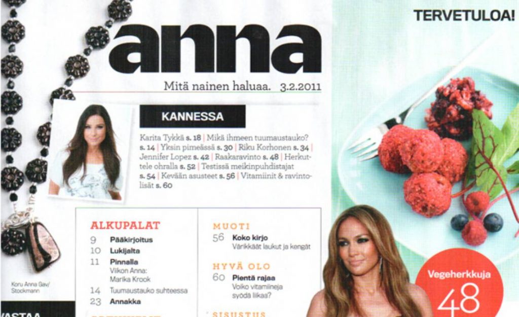Anna Gav Jewelry in newspaper Iltalehti Ilona.