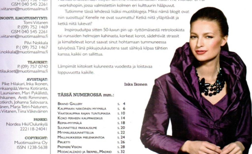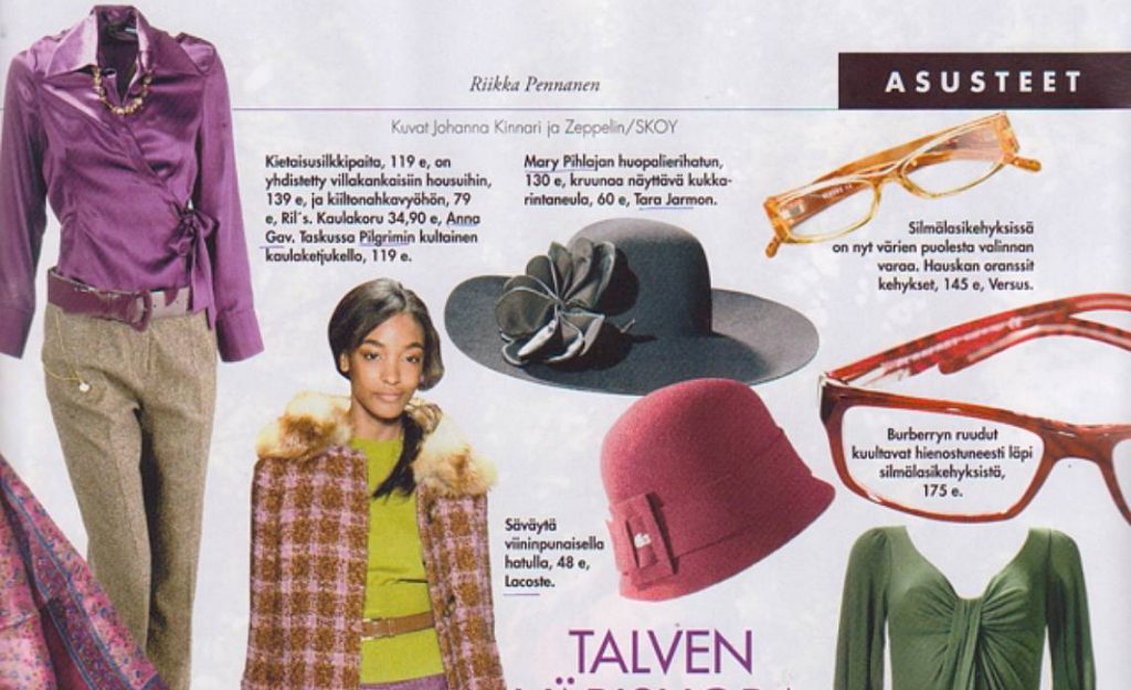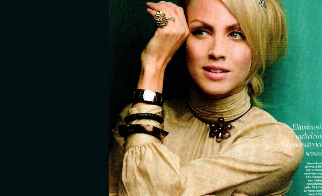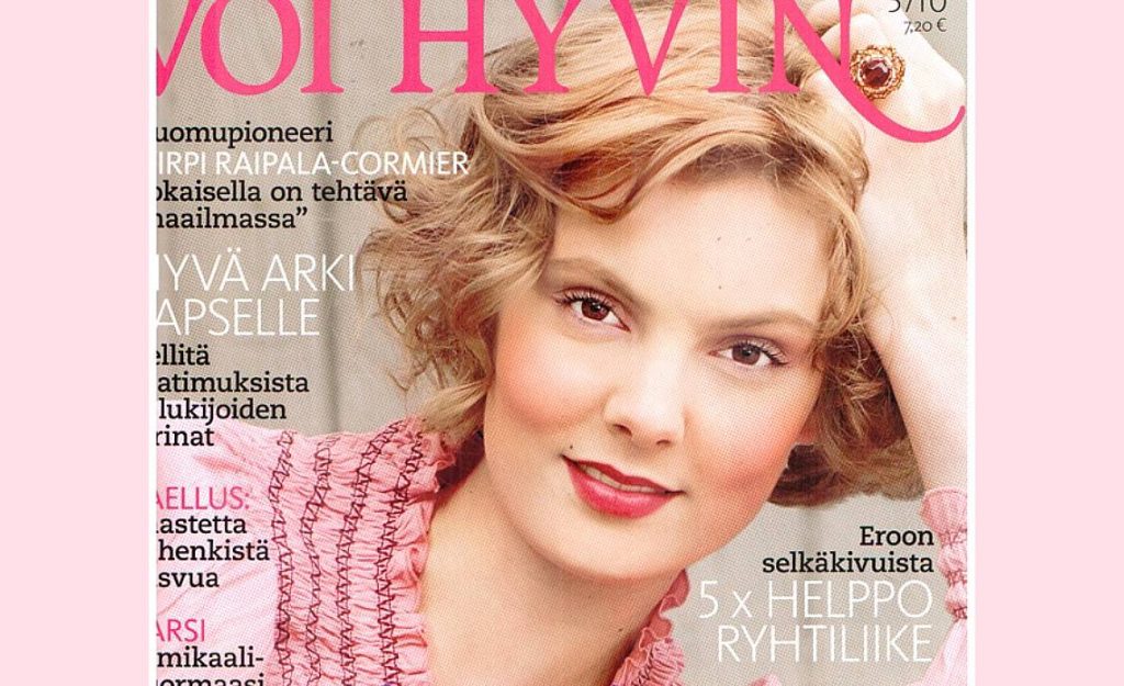 On the cover of magazine Voi Hyvin the model Virpi Raipala-Cormier wears Anna Gav ring.