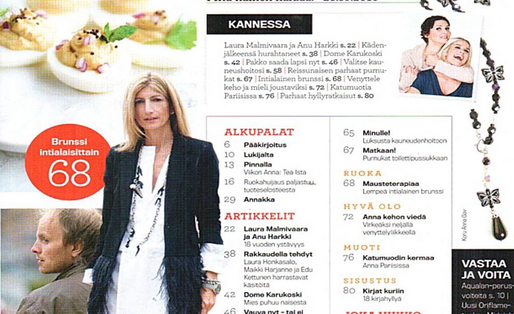 On the cover of magazine Kauneus & terveys is Anna Gav jewelry.
